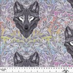 This is a printed woven cotton fabric with a directional stripe repeat. Wolf faces are approximately 6" tall.