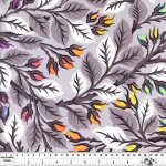 A tangle of monochromatic leaves and vines is the backdrop for rainbow-hued buds in this silky, cotton sateen wideback fabric from Tula Pink's Graywork collection.