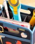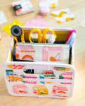 This mini box is perfectly sized to organize the little things: patterns, crafting supplies, and quilting and sewing notions. They fold up and stow away in a snap. Made from high grade, tear proof, dirt resistant polyester. One compartment with two elastic mesh pockets.