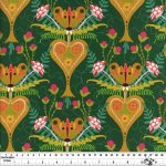 This lush print from Alison Glass features a floral arrangement seated in a spade, with a beautiful moth perched atop.