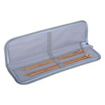 Hard, zippered case made from cotton fabric. Internal elastic loops keep tools tidy, including knitting needles, paint brushes, and other long, skinny items.