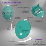 The front of The Knit Kit contains a durable row counter and a smooth retracting 5ft. tape measure. The left side of The Knit Kit has a fully removable crochet hook for picking up that dropped stitch or weaving in an end.